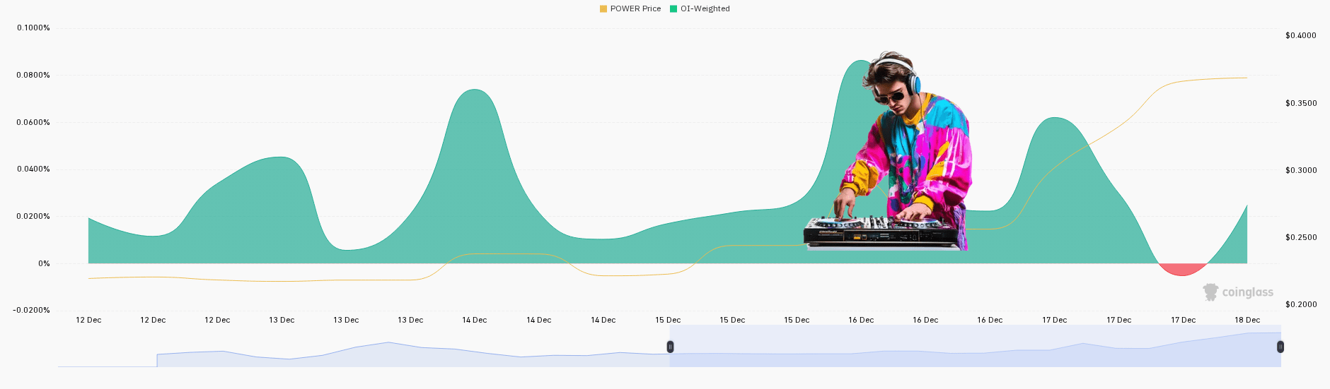 However, look at that OI-Weighted indicator, that's the real talk. After a pump that pushed OI to the highest peak on 13 Dec and then a slight sell-off, by 16 Dec, it was pushed up again in sync with the price surge. But right after that, on 17 Dec, when the price of POWER was sitting near $0.38, the OI-Weighted plummeted without brakes, diving deep into negative territory. Oh my, it's truly a sight that makes you want to "drop your heart", no joke.