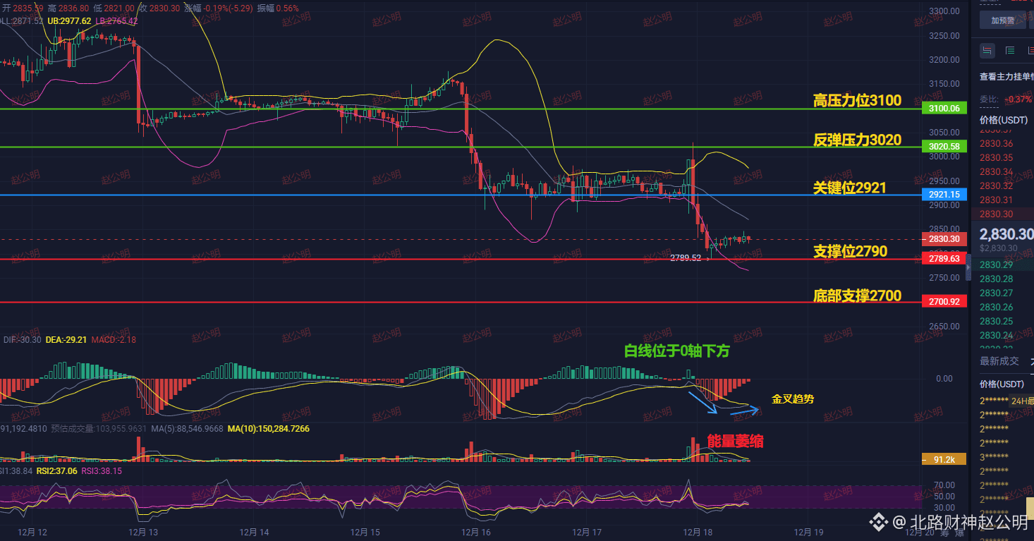 赵公明坚决看空ETH后市。在巨鲸资金疯狂外流和技术面全面溃败的双重夹击下,所谓的“支撑”都脆弱不堪。
