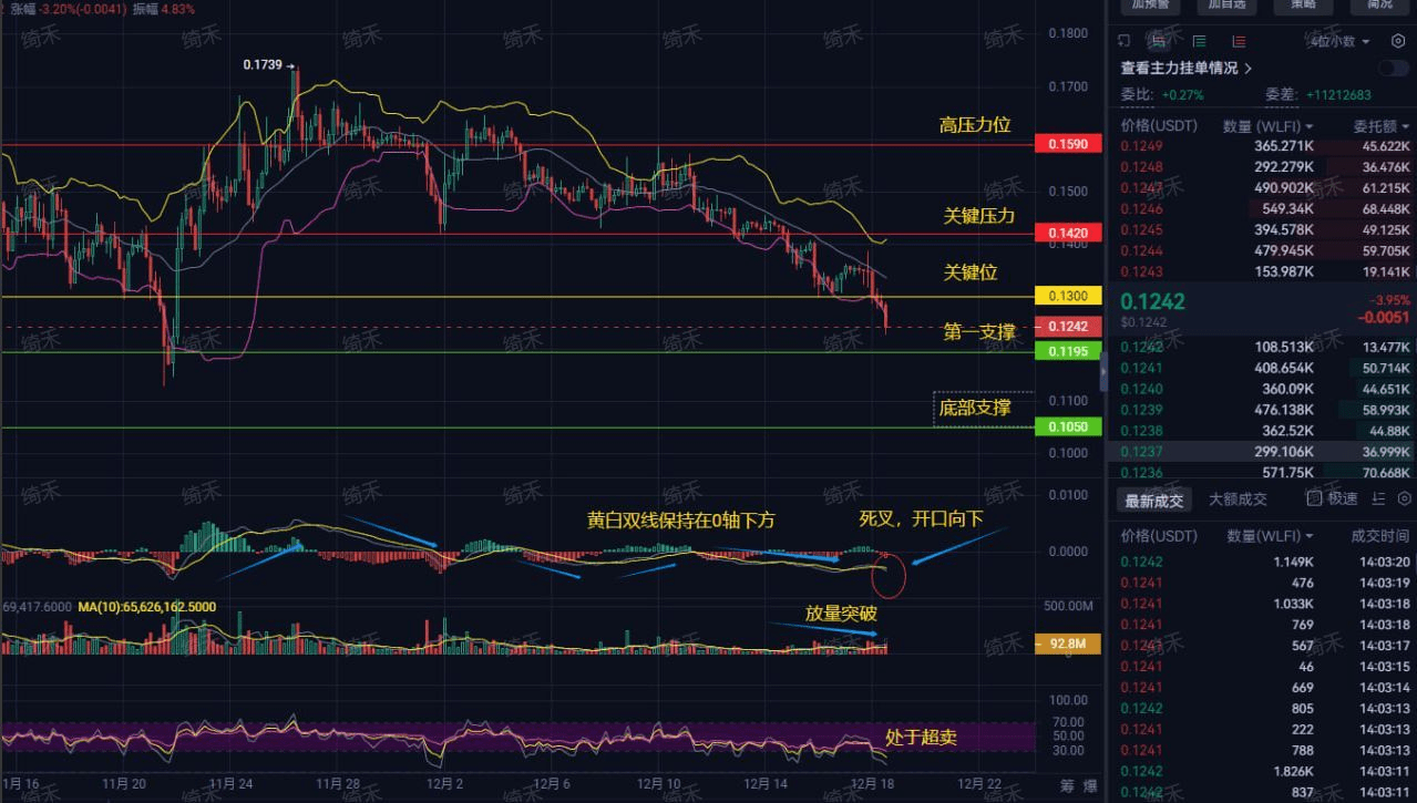 The critical point is at 0.1300: this position is the boundary line between bulls and bears, and it is also a key level in the chart. If it holds, it can linger in this range; once it breaks below with high volume, the next target is straight to the support level of 0.1195, and that drop could be painful.
