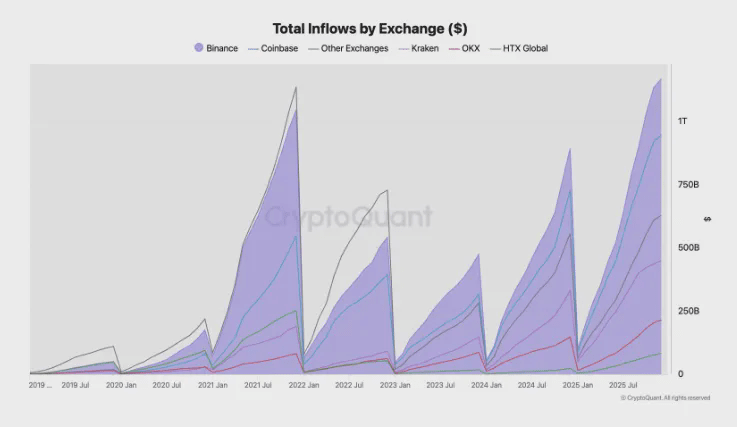 In 2025, Binance recorded an inflow of funds amounting to $1.17 trillion — a record value among cryptocurrency exchanges in the history of the industry, according to CryptoQuant.