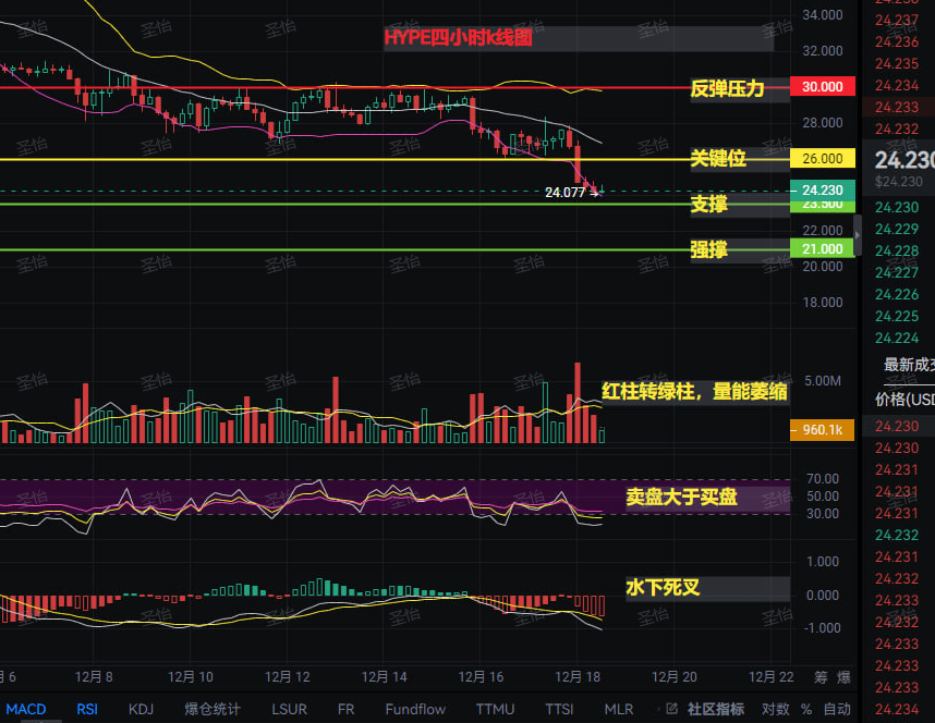 "Liquidation bottom" strategy: whales often have rebounds near the liquidation price (23.6), you can try with a small position, but must stop loss if it breaks down.