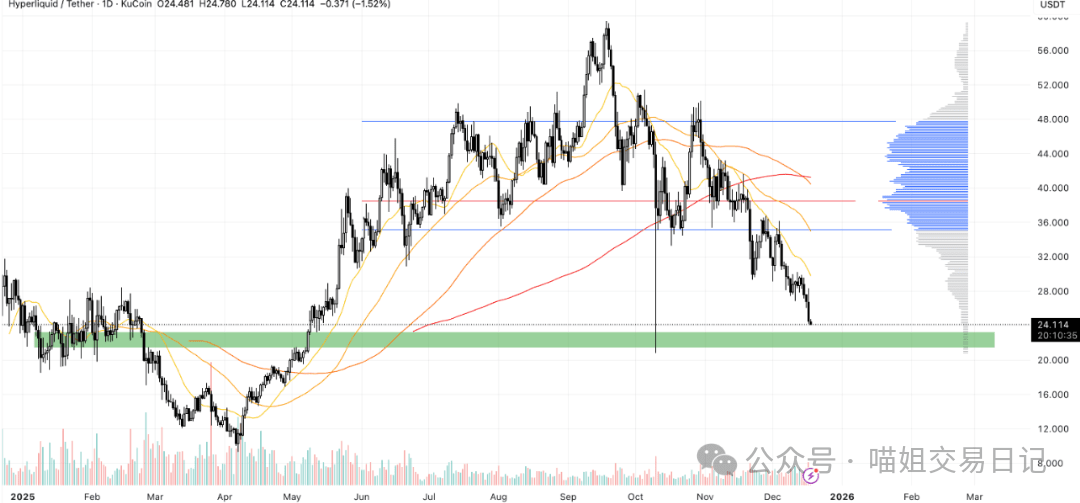 HYPE has broken below the lower boundary and is starting to accelerate downward. Yesterday's destruction benefit only supported it slightly before being swallowed. The bearish strength is very strong, and it still has not accelerated. The target is near 20 to observe the reaction.