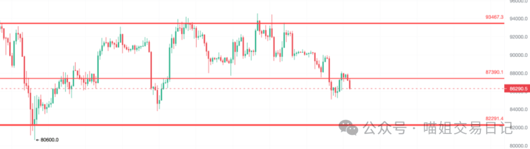 2) As long as it does not break the critical support level of 83700, there is no need to be pessimistic. Currently at the 4-hour support level, do not directly chase shorts. Support and resistance situation.