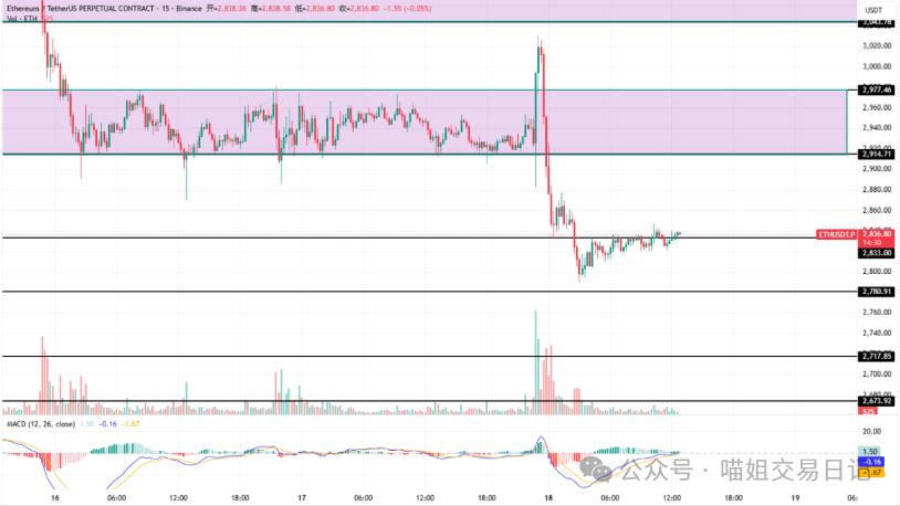 ETH violently rose to 3030 and then plunged to a new low of 2788. The 1-hour level has shown two consecutive narrow fluctuations → quick rise → engulfing candle, a very typical false breakout path.
