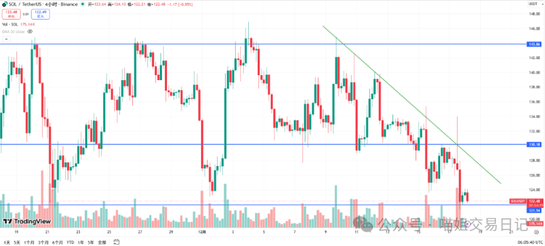 SOL has dropped to the daily support level, but this support has already been consumed, so there is no need to rely on this position to go long; the win rate is average. However, for shorting, one can only wait for a break below the daily support to participate.