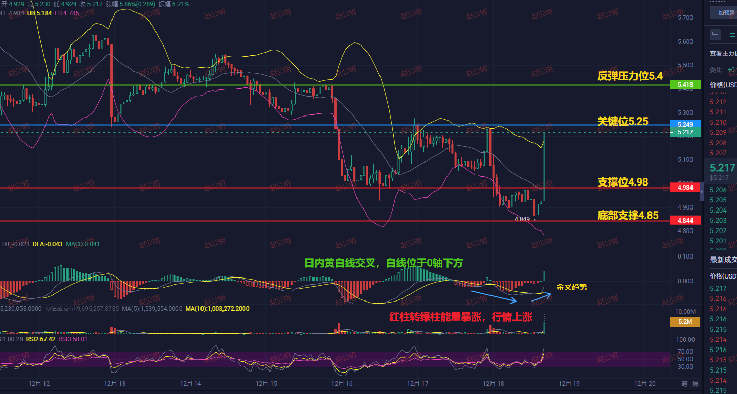 Holding suggestion: Continue to hold, move the stop-loss protection level up to the 5.0-5.1 range to lock in profits. The primary target is aimed at the 5.4-5.7 resistance zone.
