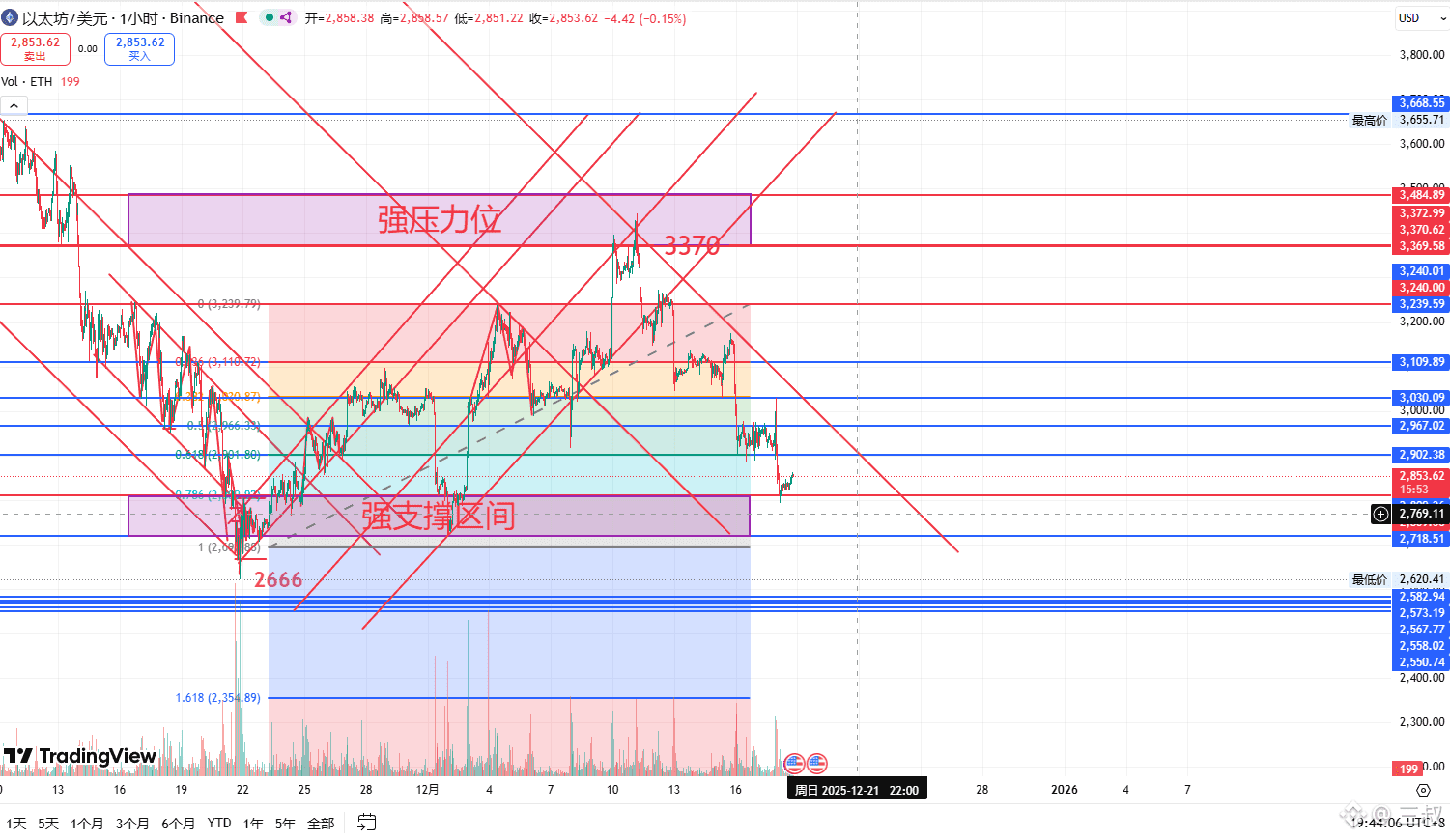 当前ETH趋势性看空的核心逻辑未发生改变,但今晚数据公布前,盲目做空与激进追多均存在极高风险。真正的趋势决战,始于数据公布后市场的即时选择——无论是直接向下击穿支撑,还是先拉高再俯冲,均将决定年末市场的财富分配格局。
