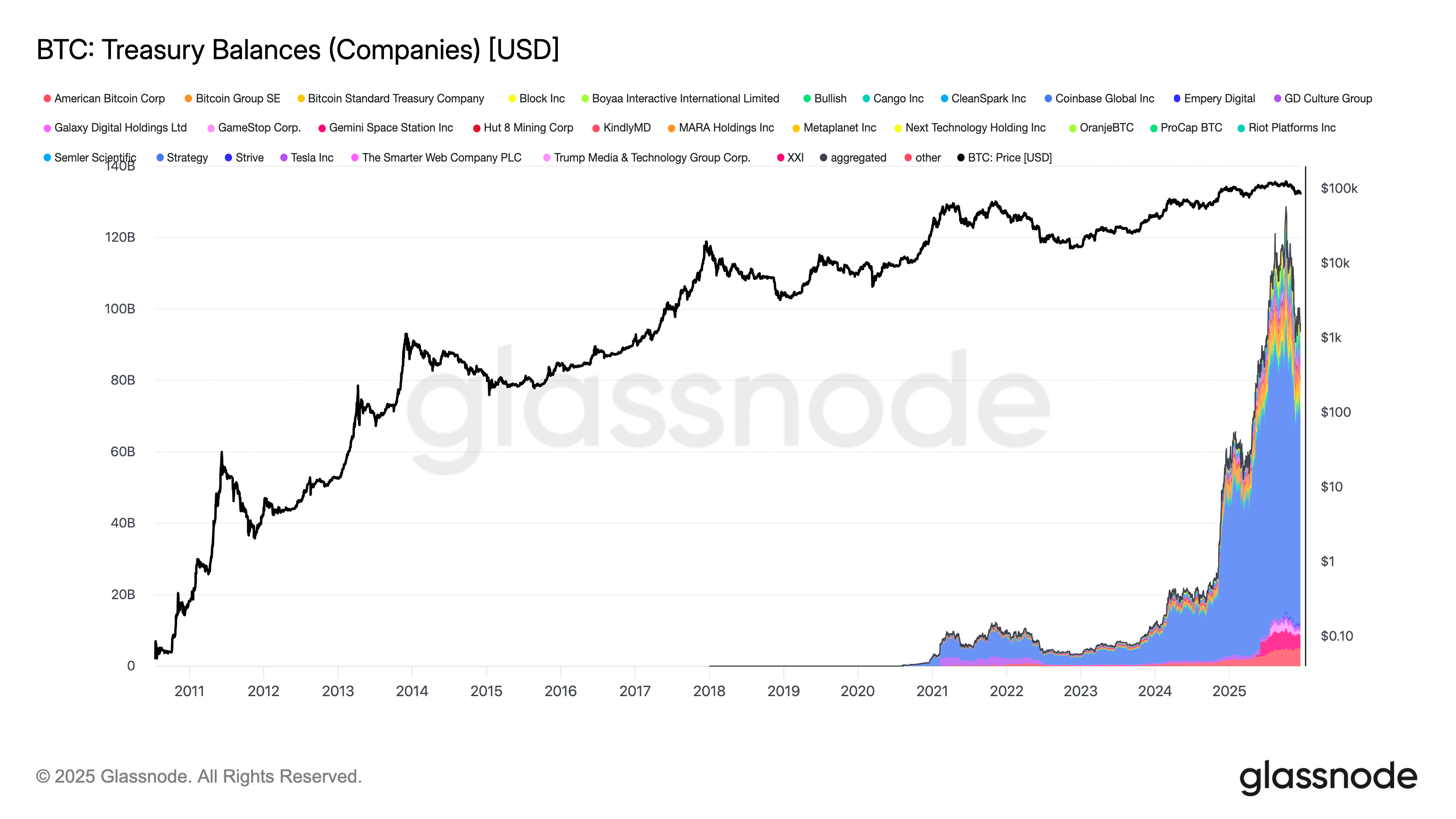 As of December, Bitcoin ETFs in the U.S. backed by BlackRock, Fidelity, and other organizations have held a total of over 1,30 million BTC (equivalent to approximately 114,13 billion USD), an increase of 309% compared to the launch in January 2024. Concurrently, public companies are also holding over 1,08 million BTC (nearly 100,42 billion USD) in treasury, a group of investors that barely existed before 2020.