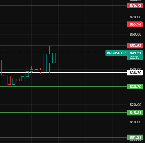 Pay attention to this position 838 at night for BNB. As long as the small level pullback does not break this position, the bullish trend remains, and continue to pay attention to the upper pressure levels around 853-866-876!