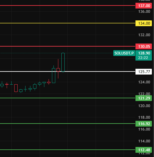 Pay attention to this position 125 at night for SOL. As long as the 4-hour level pullback does not break this position, the 4-hour level starts to rebound, and continue to pay attention to the upper pressure levels around 130-134-137!
