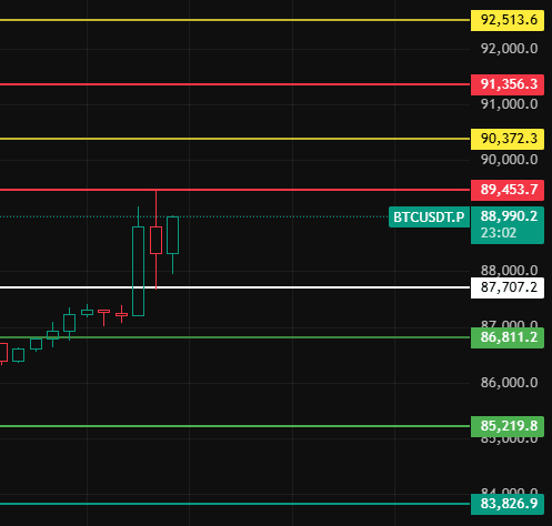 Pay attention to this position 87700 at night for Bitcoin. As long as the small level pullback does not break this position, the bullish trend remains, and continue to pay attention to the upper pressure levels around 89450-90370-91360!