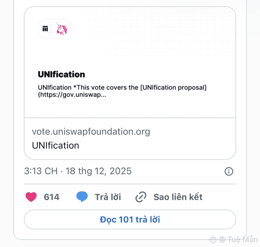 Đề xuất quản trị chung giữa Uniswap Labs và Uniswap Foundation — nhằm kích hoạt phí giao thức và đồng bộ hóa các cơ chế khuyến khích trên toàn bộ hệ sinh thái — đã chính thức bước vào vòng bỏ phiếu quản trị cuối cùng.
