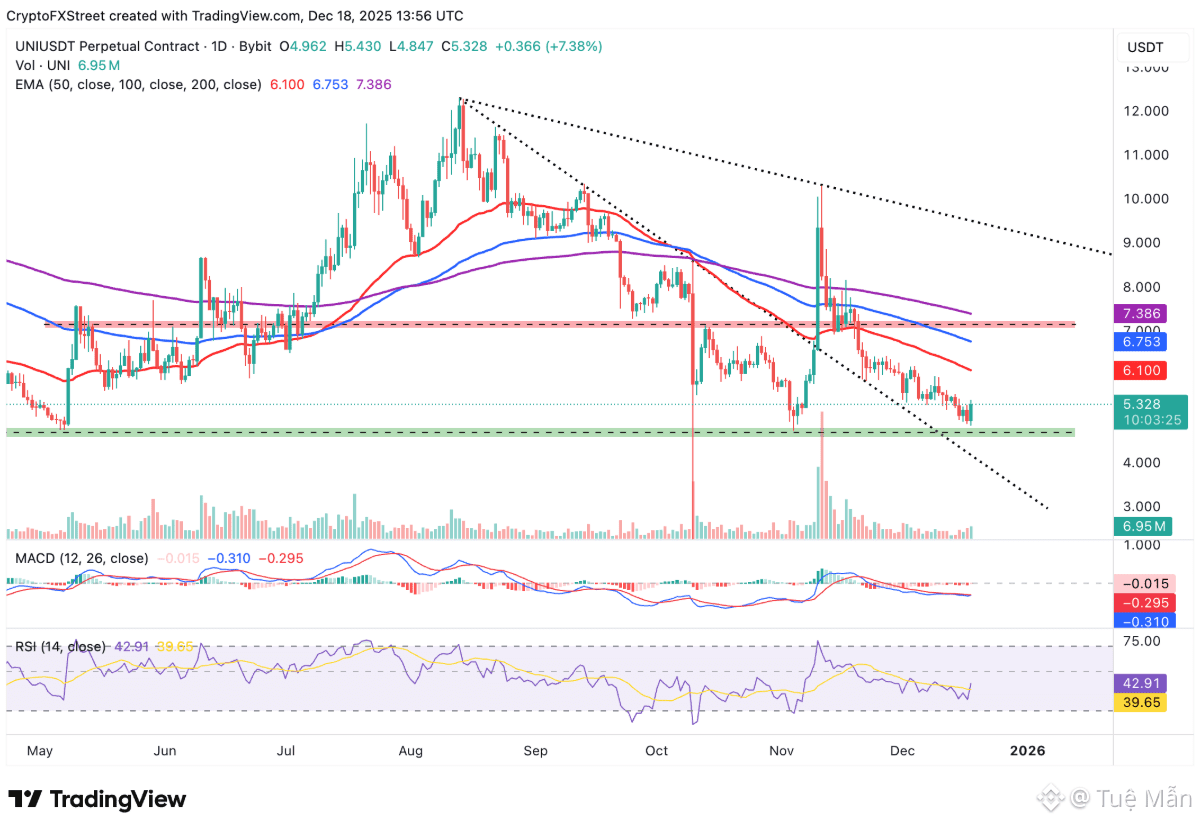 Uniswap (UNI) đang giao dịch quanh mốc 5,00 USD tại thời điểm viết bài vào thứ Sáu, trong bối cảnh tâm lý thị trường đối với token gốc của sàn giao dịch phi tập trung (DEX) này vẫn ảm đạm. Mặc dù vậy, triển vọng phục hồi được củng cố khi giới đầu tư kỳ vọng vào cuộc bỏ phiếu cho đề xuất quan trọng đã được chờ đợi từ lâu, có thể tạo ra bước ngoặt mới cho hệ sinh thái Uniswap.