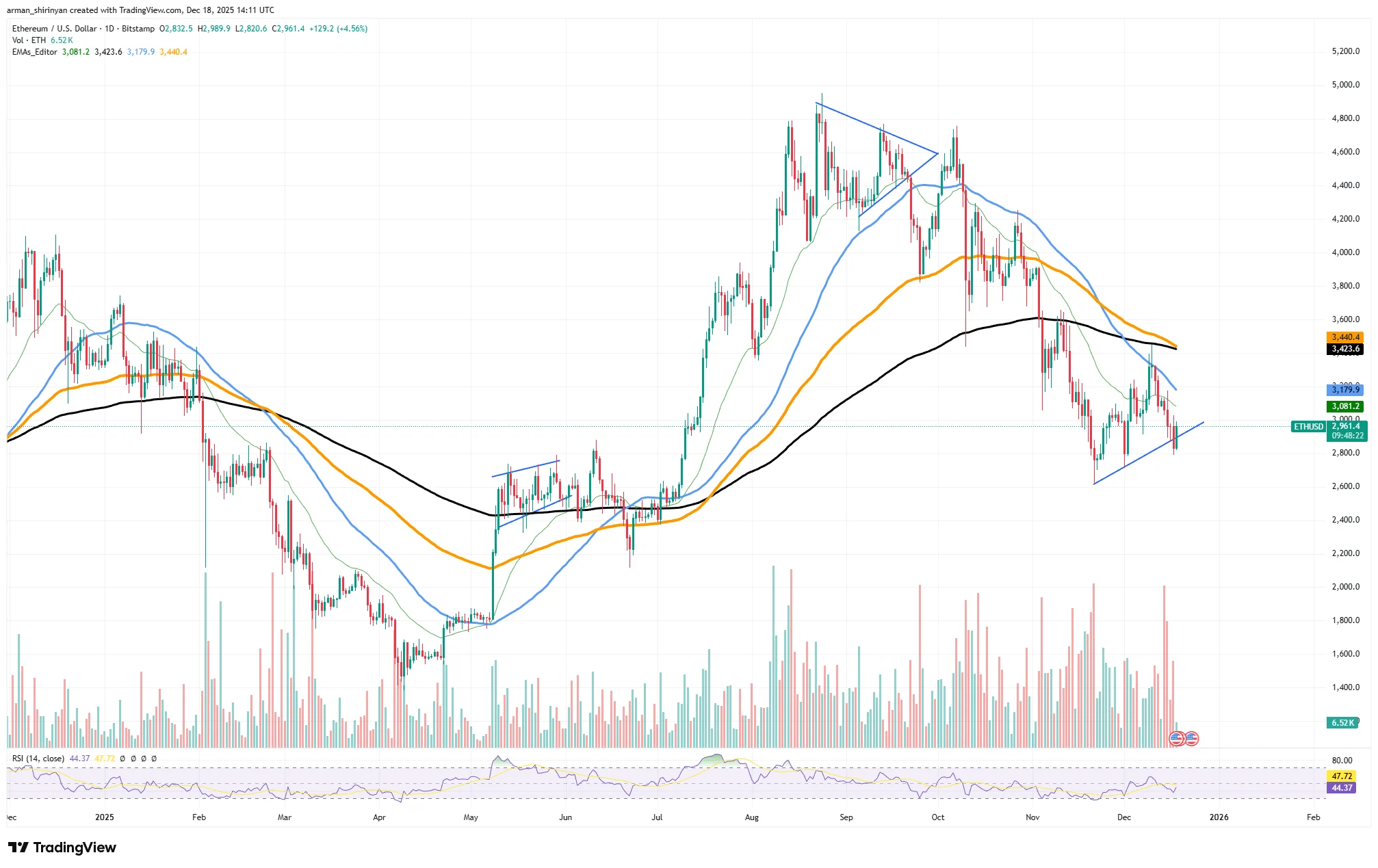 Essentially, Ethereum is currently in a vacuum between an active demand area and a potential demand area. From a technical perspective, $2500 is the next area where buyers might reasonably appear. This is not because there is anything magical about this price level, but because it aligns with long-term moving averages, psychological pricing, and previous accumulation trends.