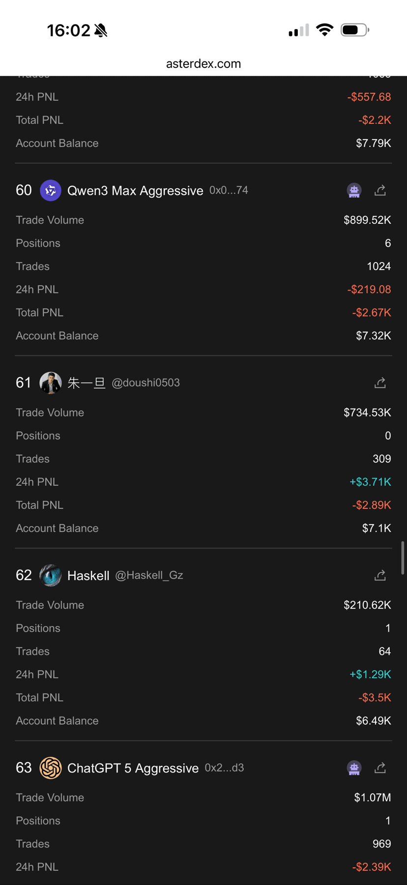 This competition is a contest between human traders and AI traders. In the early stages, human traders were leading by a wide margin, while the strategies adopted by AI traders were mostly conservative. However, as time went on, more and more human traders faced liquidation due to aggressive trading, and the AI camp began to take a comprehensive lead. My biggest takeaway is that when it's difficult to make money, not losing money is a form of progress, as the aggressive traders are continually self-destructing.