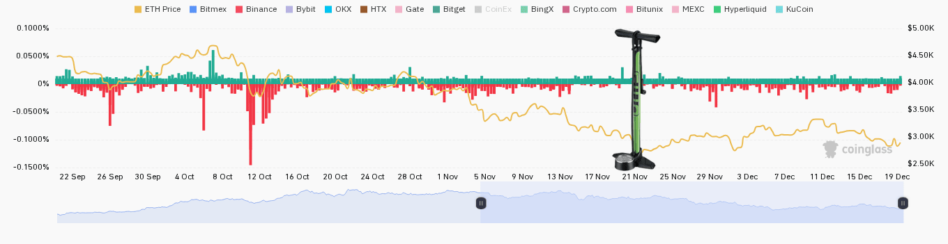 Now it's just hovering around 2.8k, 2.9k. The red and green lines of open interest and funding rate have been deep red for over half a month, clearly the market sentiment is very depressed. Everyone keeps thinking about ETH and feels disheartened.