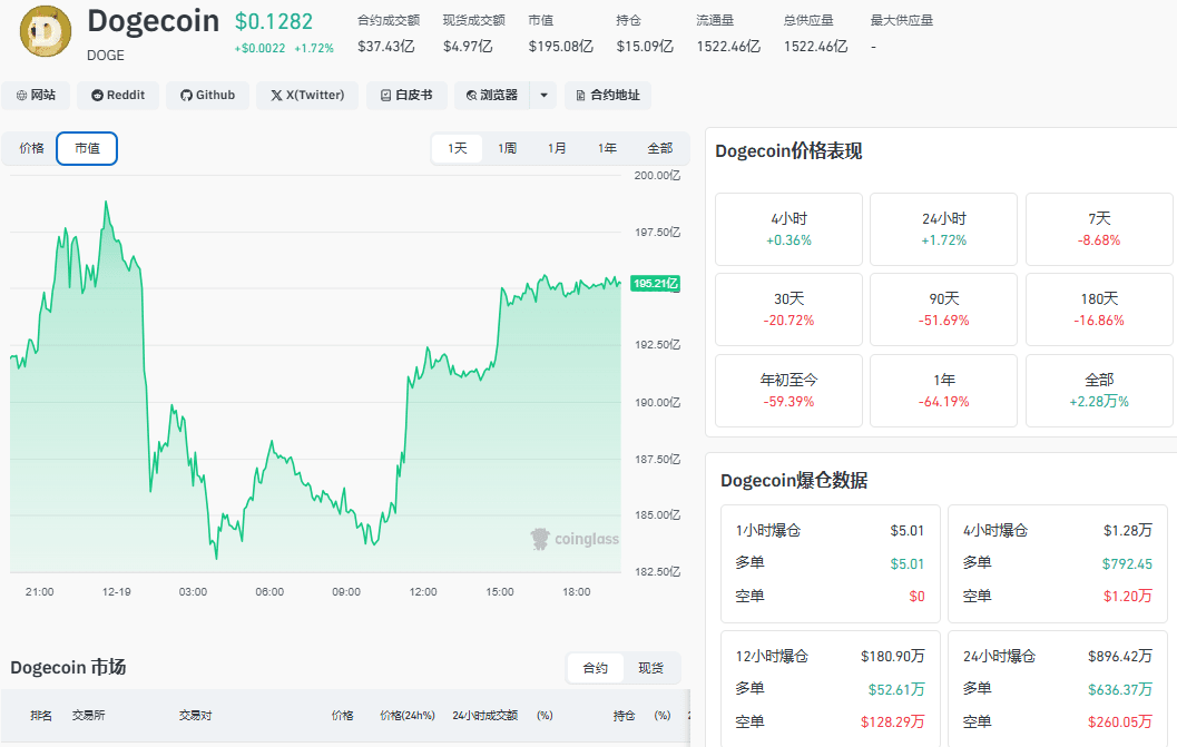DOGE current price 0.1282, up 1.72% in 24 hours, indeed rebounding in the short term. But you see the 7-day drop of -8.68%, and over 20% drop in 30 days, what does this indicate? Short-term rebound does not change the long-term downtrend. It's like a person who has a high fever temporarily cooling down, but the root cause of the illness has not been removed.
