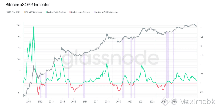 CĂŽtĂ© technique, les signaux on-chain confortent lâidĂ©e dâun marchĂ© en tension, mais non condamnĂ©. Le ratioâŻaSOPR, proche deâŻ1, suggĂšre des ventes Ă perte typiques dâune phase de capitulation, tandis quâenviron 7âŻmillions de $BTC sont dĂ©sormais dĂ©tenus en perte latente.