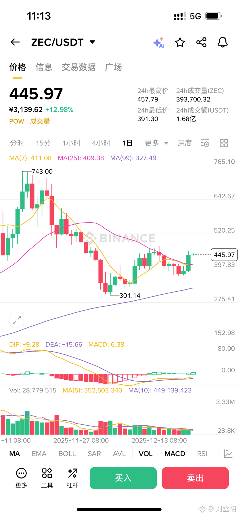 ZEC这几天真是疯了一样往上冲,一天之内从不到390美元直奔449美元,涨幅超过12%。看着账户里数字跳得欢,不少人心里可能都在窃喜。但如果你手里ZEC仓位不轻,我劝你先别急着高兴——该考虑卖出了。
