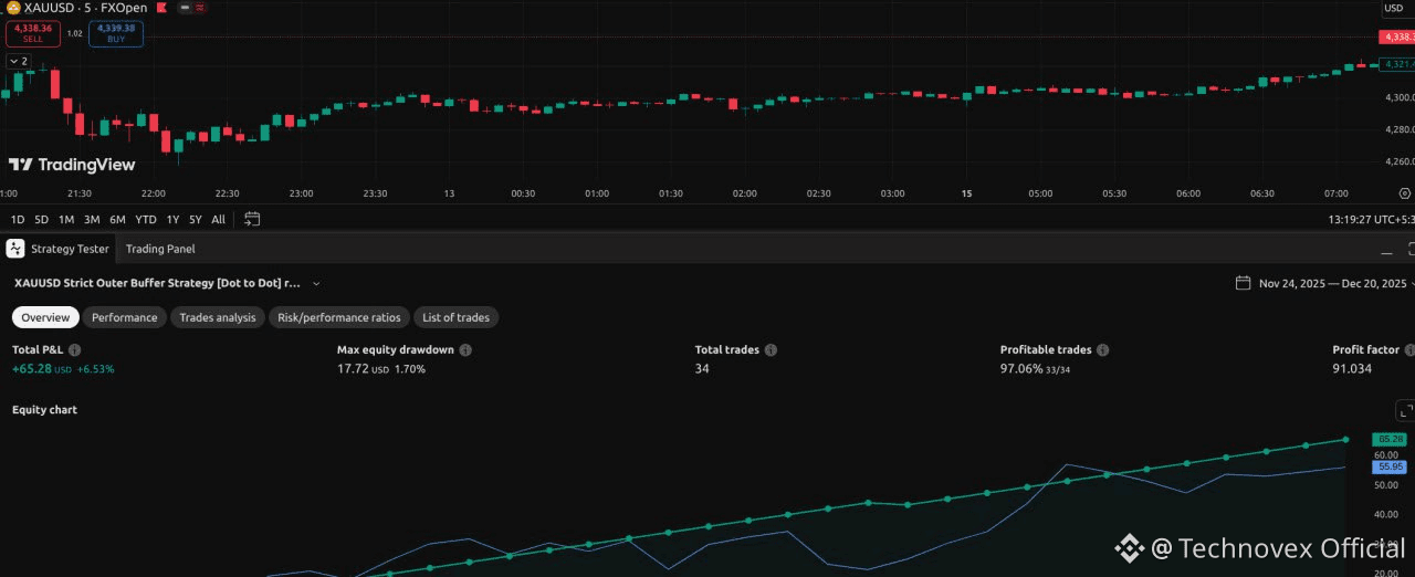The algorithm, known as the "Strict Outer Buffer System," has reportedly achieved a statistical anomaly in recent backtesting: a staggering Profit Factor of 91.03 and a 97% Win Rate on the XAUUSD (Gold) pair.