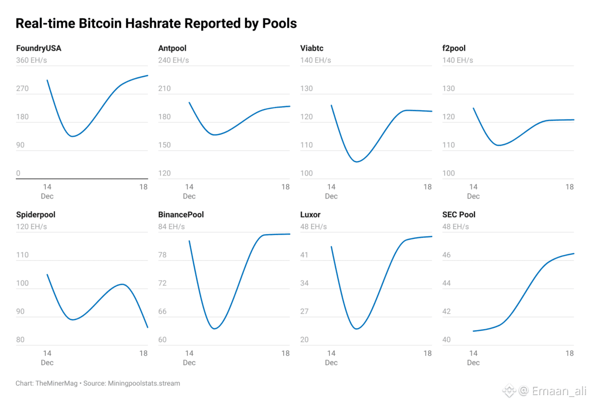 By December 18th, the "crisis" was already fading. Hashrates across most pools bounced back to near-normal levels almost as quickly as they fell.