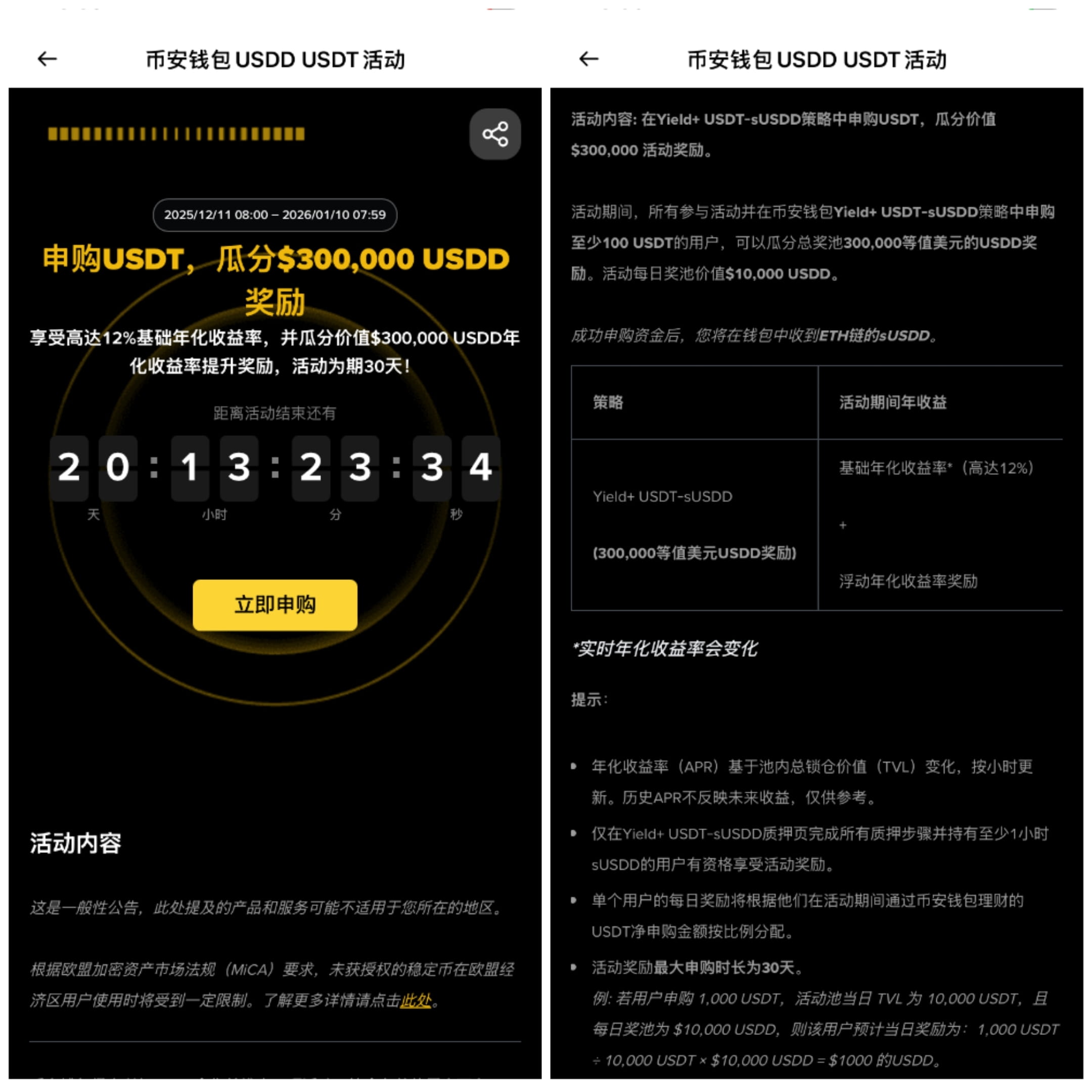 Waiting for airdrop + over 12% annual yield (participate in the second step of the sUSDD staking activity)