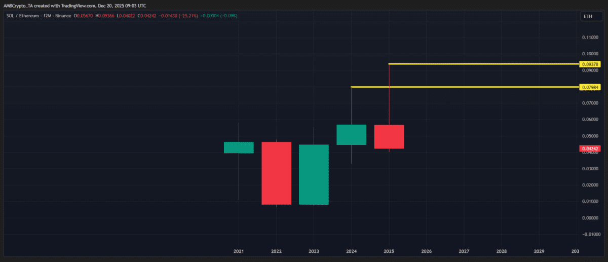 ❖ The SOL/ETH ratio declined during 2025, erasing the gains of the previous year