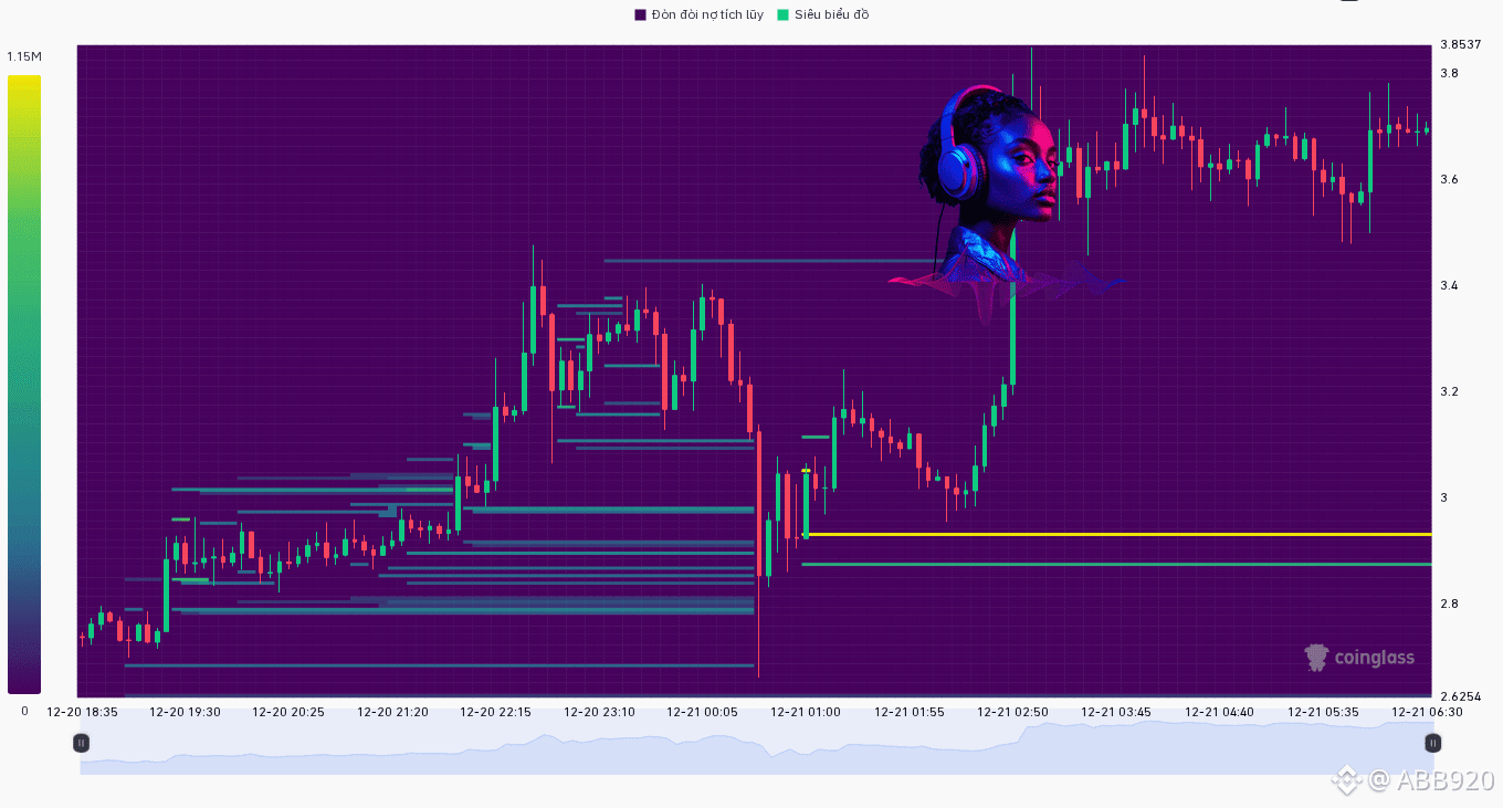 Đêm qua, tầm 1h sáng, sau khi dập dềnh tạo đáy ngon lành ở vùng 2.9 (có cái đường vàng đỡ đòn rõ nét đấy), nó làm quả pump kinh hoàng luôn. Nến xanh mướt mượt, phi thẳng từ 2.9 lên gần 3.6 chỉ trong nháy mắt. Sức mạnh này là có chủ đích rồi anh em ạ.