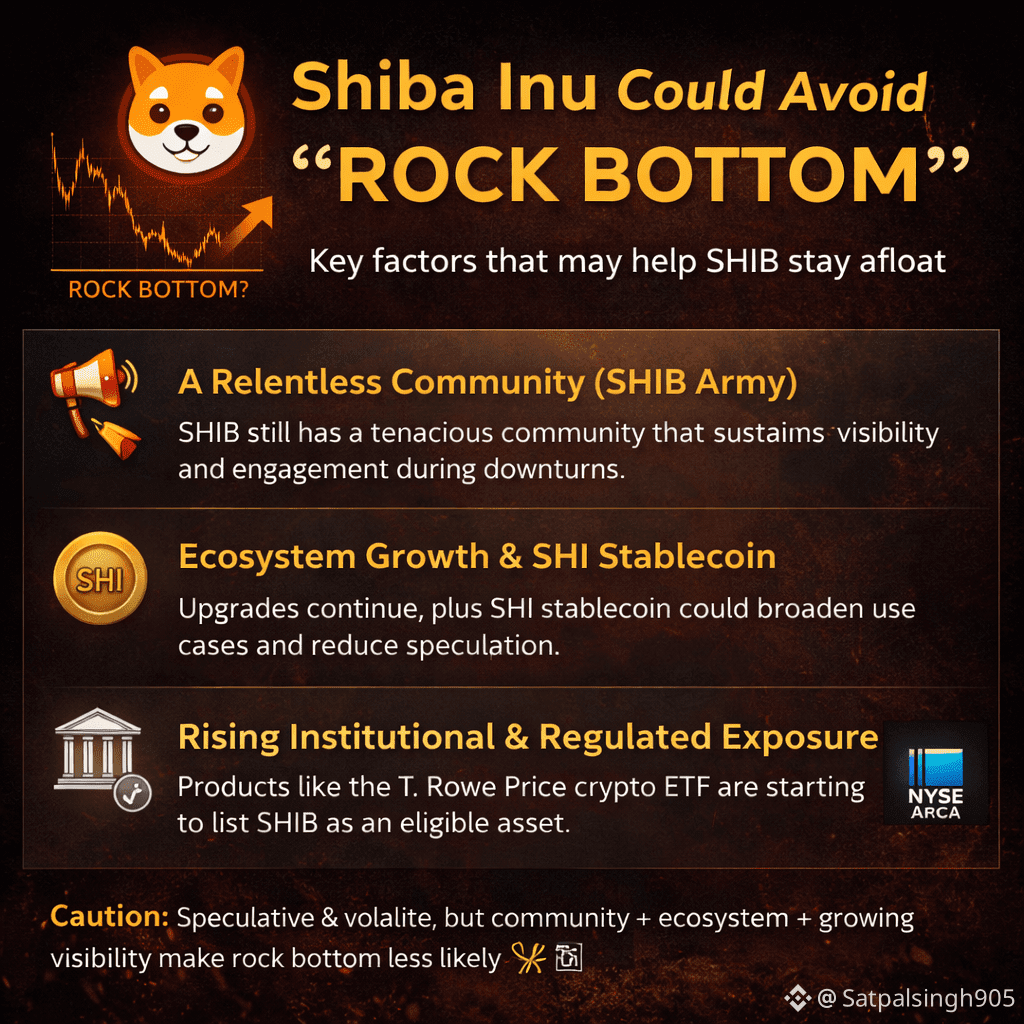 SHIB remains volatile and speculative, but community strength, ecosystem development, and early institutional visibility may help it avoid absolute lows.