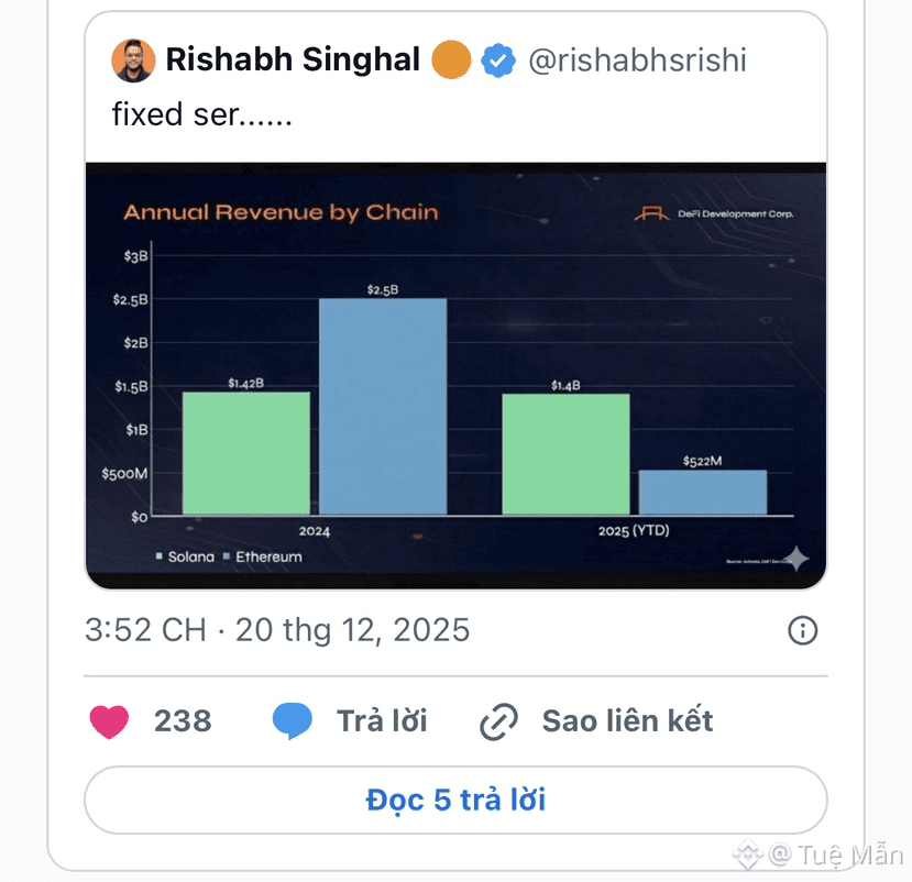 Nhà sáng lập Solana, Anatoly Yakovenko, vừa công bố dữ liệu mới cho thấy Solana đã vượt Ethereum về doanh thu hằng năm, qua đó làm nổi bật một sự dịch chuyển quan trọng trong cách giá trị có thể được phân bổ trên thị trường crypto.