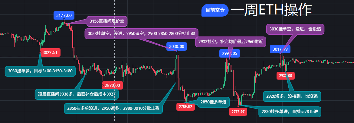 In the past week, for ETH operations, taking profits sometimes happens when placing orders, or I might give you a reminder to reduce your position for protection, and sometimes I just say I feel the profit is about right and exit. Currently, holding no positions.
