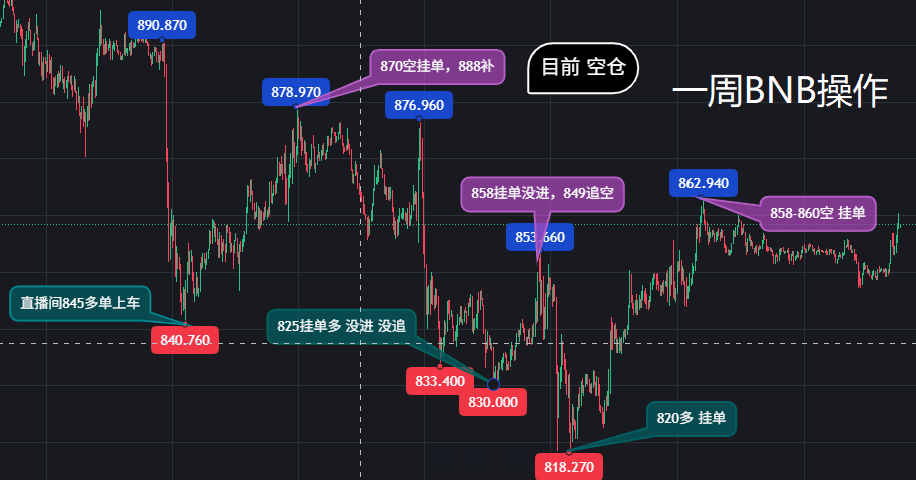 In the past week, there weren't many operations for BNB, but the positions taken were quite good. Currently, holding no positions.