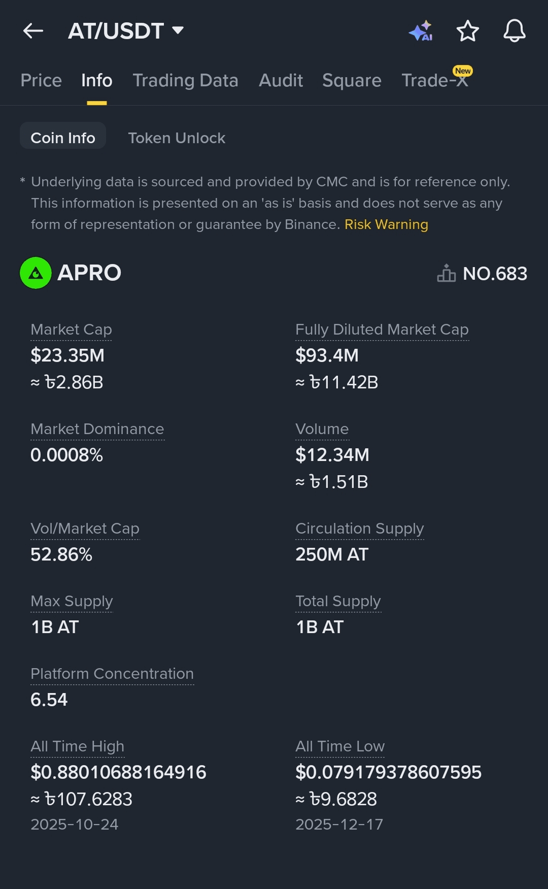 Supply: Only 25% of the token is in the market. If there is a major 'token unlock' in the future, the price may dump.