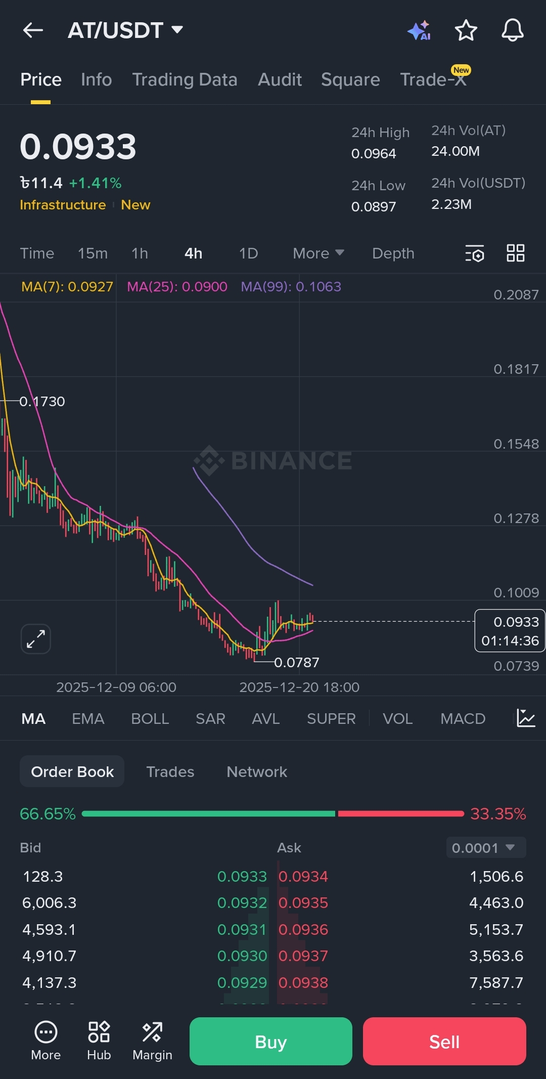 Immediate Resistance: $0.1000 - $0.1060. The purple line (MA 99) is currently near this level on the chart. Breaking this level is crucial for pumping the market.