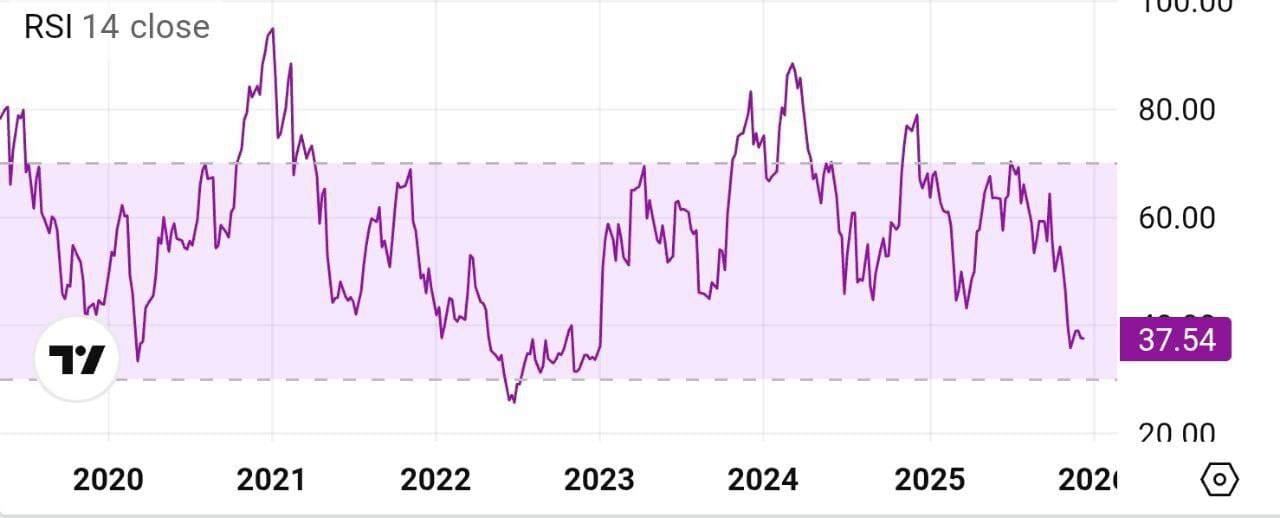 An additional signal of tension — the RSI index for Bitcoin is approaching lows not seen in the last three years. This speaks less of a 'guaranteed reversal' and more of an exhaustion of momentum: the market has been under pressure for a long time and is not demonstrating sustainable demand.