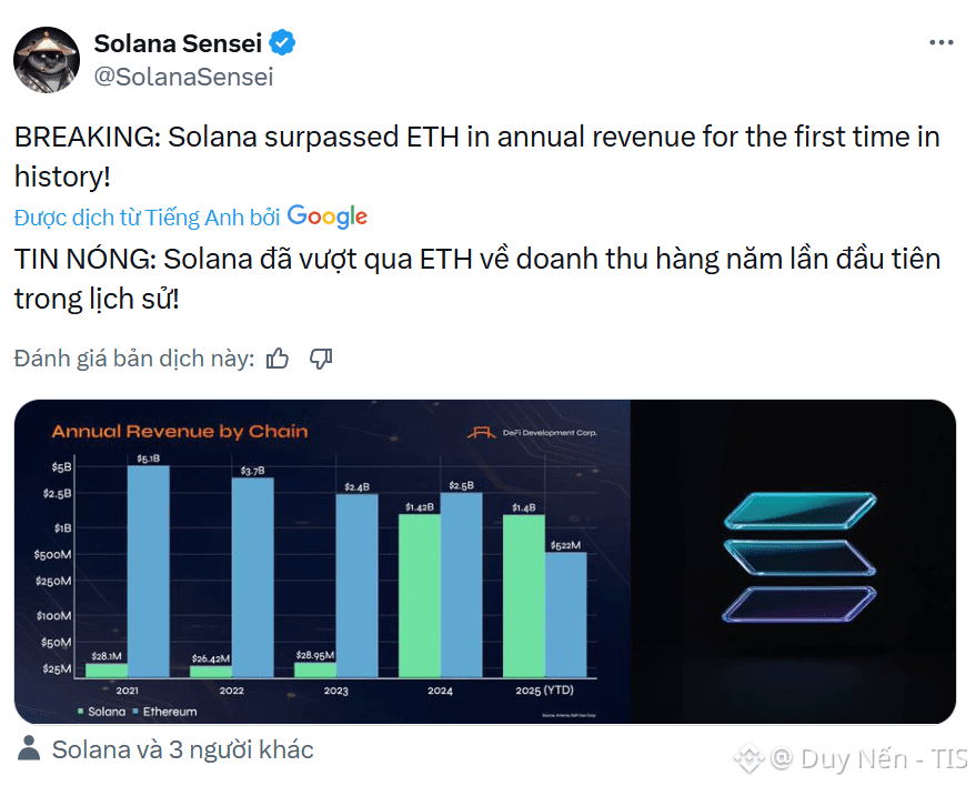🔸 Anatoly Yakovenko dự kiến trong năm 2025, Solana sẽ bỏ túi $1.4 tỷ doanh thu, gấp gần 3 lần con số $522 triệu của Ethereum. Cuộc chơi Blockchain giờ đây không còn là những câu chuyện bánh vẽ nữa mà là cuộc đua về hiệu suất thực tế và tiền tươi thóc thật.
