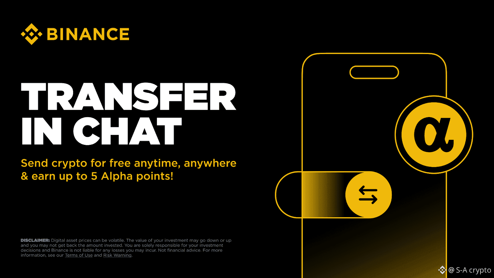 Binancians, the latest Alpha Points earning task has officially gone live! For a limited time, every crypto transfer you make directly in Binance Chat can earn you Binance Alpha Points โ the key to unlocking airdrops, exclusive events, and early-access token opportunities ๐. ๏ฟฝ