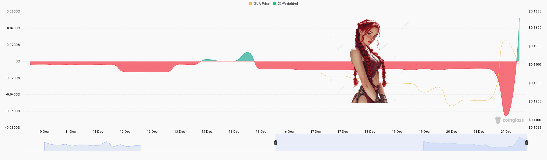 Hey everyone, this GUA is truly like "sunshine in the morning, rain in the afternoon, and a storm at noon". A few days ago, around December 15 to 20, it seemed to be meandering, crawling like a crab. The price kept decreasing steadily, and the O2-Weighted line was as red as the blood of hungry sharks; just looking at it made a hero feel discouraged. I thought it was settling down, preparing to rest in peace with some winter altcoins.