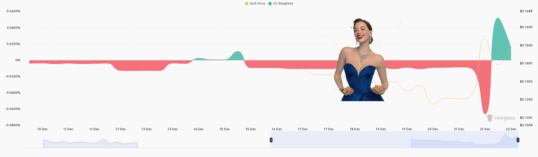 One hit! On December 21, GUA gave a shocking crash! The price plummeted without brakes, dropping straight from $0.14 to nearly $0.11. The entire OI-Weighted segment was also a big red mess, just like a "short squeeze". At that time, I bet a lot of folks were "heart racing, legs shaking" thinking it was over!