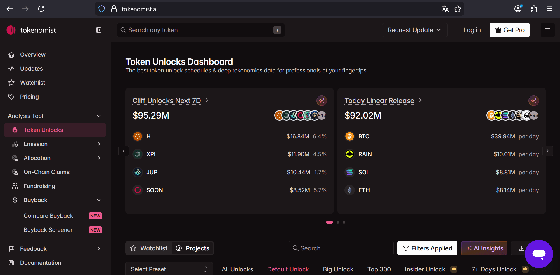 Analysis of upcoming unlockings