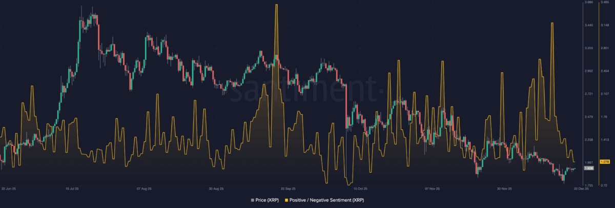 The current reading of market sentiment indicates a clear shift in the overall mood towards XRP, leaning towards severe pessimism, a pattern that has historically been associated with the beginnings of strong rebound movements ⚠️↗️.