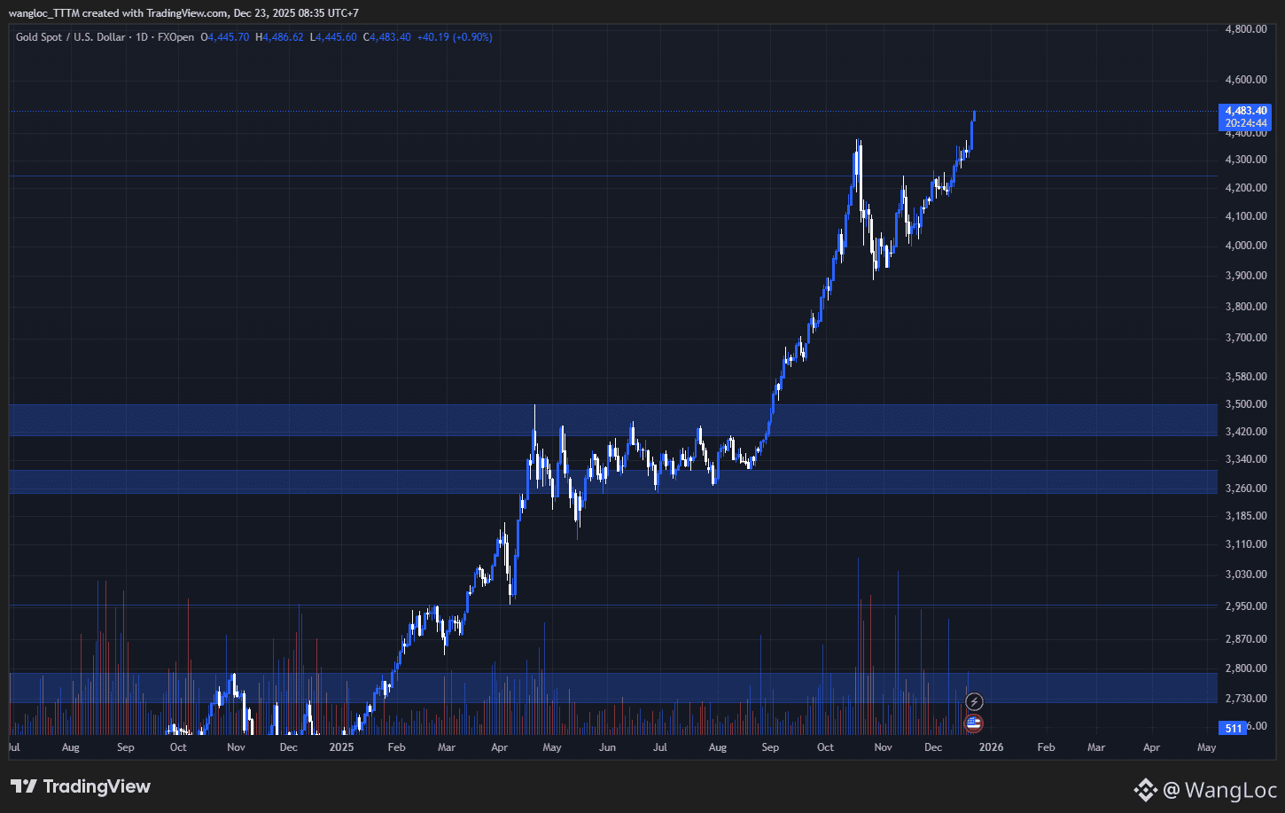 The Daily chart of Gold ($XAU ) is telling a clear story fear inside traditional finance is accelerating. Price has broken through every major resistance and is now trading around $4,478, with momentum still firmly intact.
