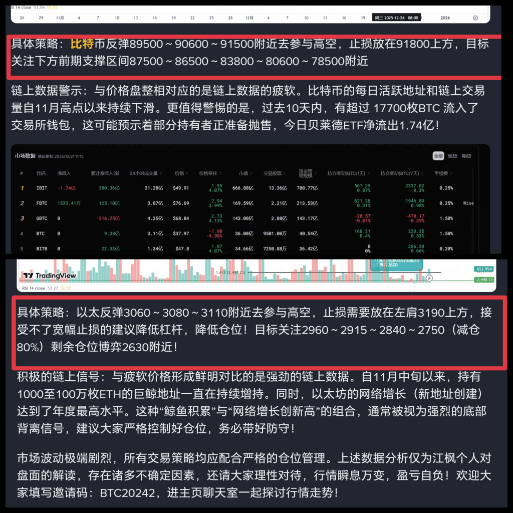 This Christmas week, Bitcoin is not 'falling behind,' but is undergoing a critical 'structural test.' The bulls' tenacious defense above $84,000 deserves respect, but if they cannot break through the resistance at $94,000 in the short term (1-2 weeks), the risk of a prolonged downturn will sharply increase. In contrast, Ethereum, with its improved fundamentals and technical breakthroughs, shows better short-term momentum. Traders should abandon simplistic fantasies about the 'Christmas rally' and instead focus on the key price levels mentioned above, allowing the market to determine its direction.