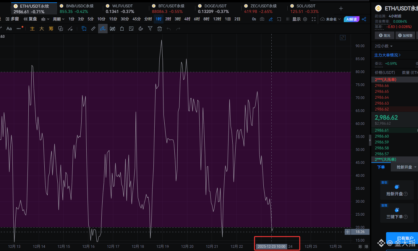 然而,市场并非简单的线性运动,其中充满了变数和意外。我们鑫火燎原指标为我们揭示了一个重要的信息:在2960关键位附近,会有大量买盘挂单。这意味着什么呢?简单来说,当价格接近或触及这个关键位时,那些提前布局的买方力量就会像隐藏在暗处的猎手一样,纷纷出手。大量的买盘涌入,就像给即将熄火的引擎注入了新的燃料,很可能会推动价格反弹回升,故此建议当前还在观望的朋友短线还是以低多为主!具体买卖点位可以关注我,金大指从不废话,不带夸张,拒绝马后炮。如果对你有帮助,主页置顶作品找到我!24小时盯盘,手把手教会建仓依据!$ETH #ETH走势分析 #社区跟单 #实战派交易
