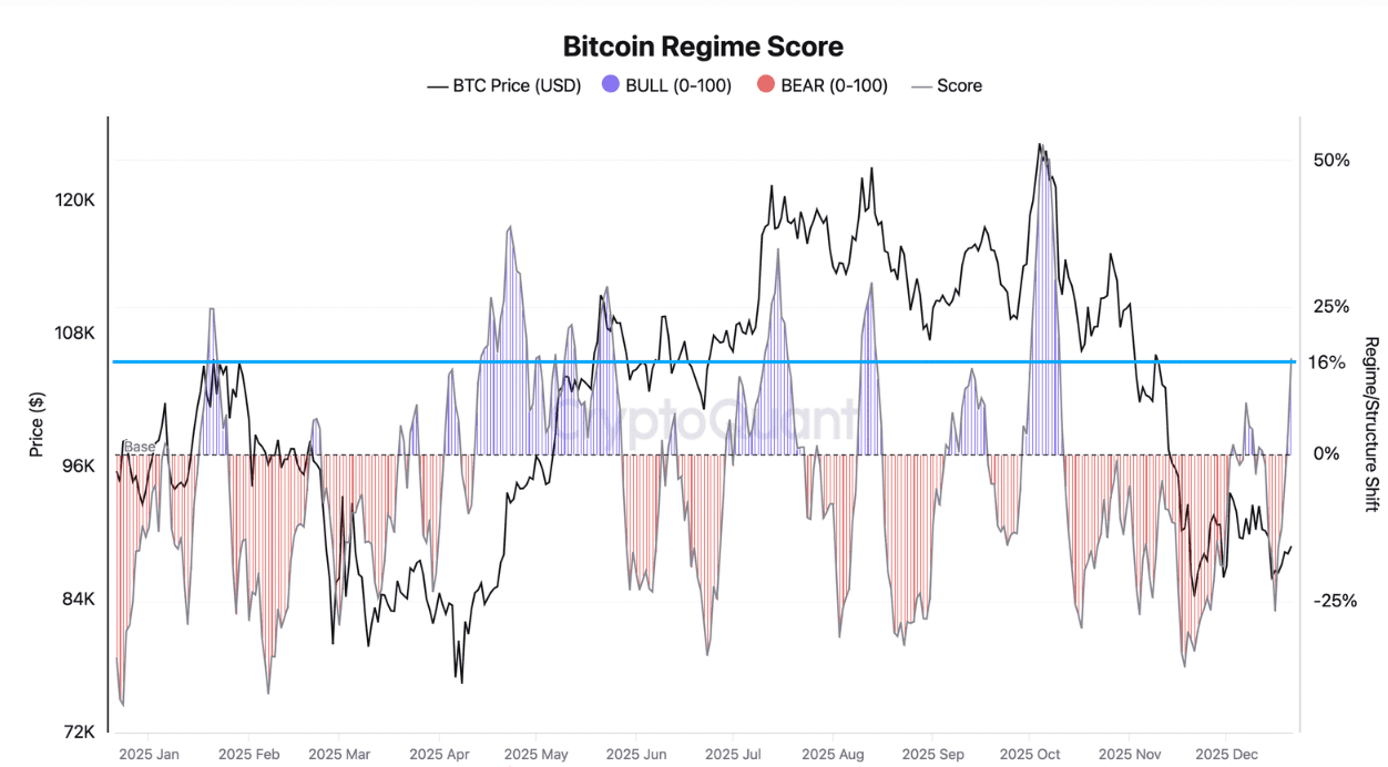 "BTC is entering the Christmas trading window: the Regime Score is bullish, but not yet overheated."