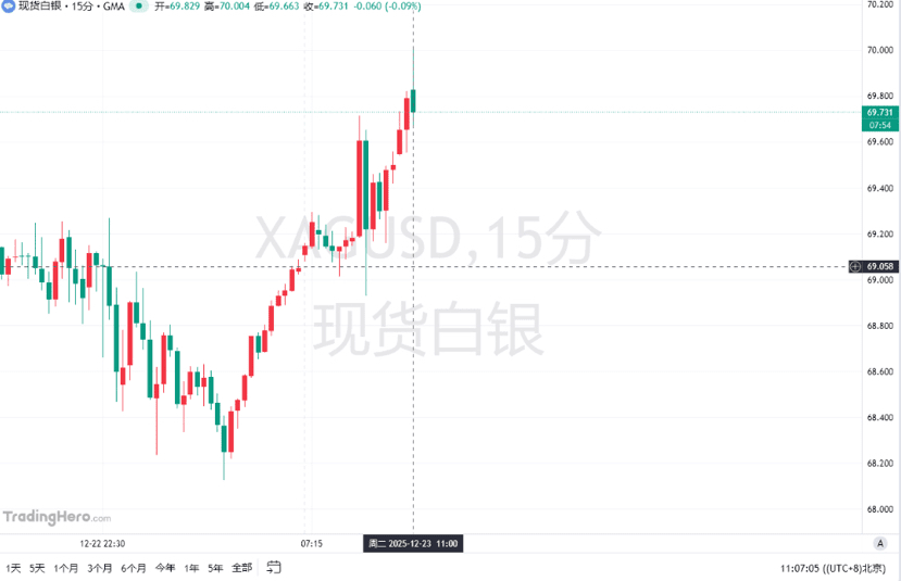 On Tuesday morning around 11 o'clock Beijing time, spot silver broke through the $70 per ounce mark, with a year-to-date increase of 142%.
