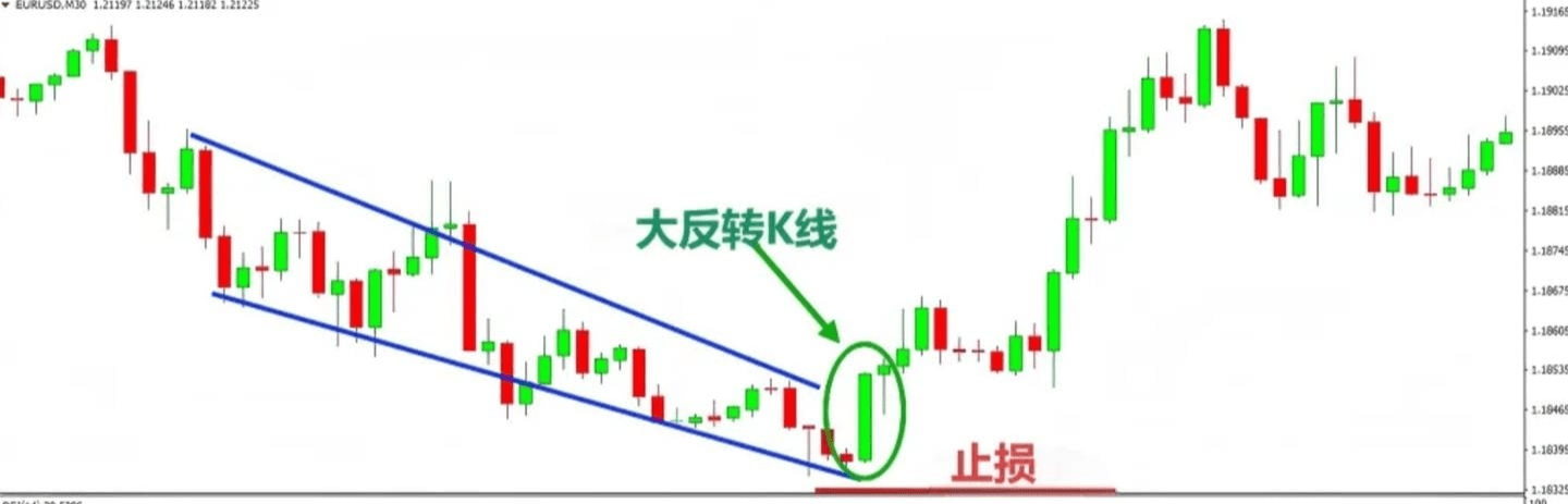 Based on the case mentioned earlier, if we consider that obvious reversal bullish candlestick as a signal of the start of a bullish trend, then the stop loss should be set below the lowest point formed at the time of the reversal.