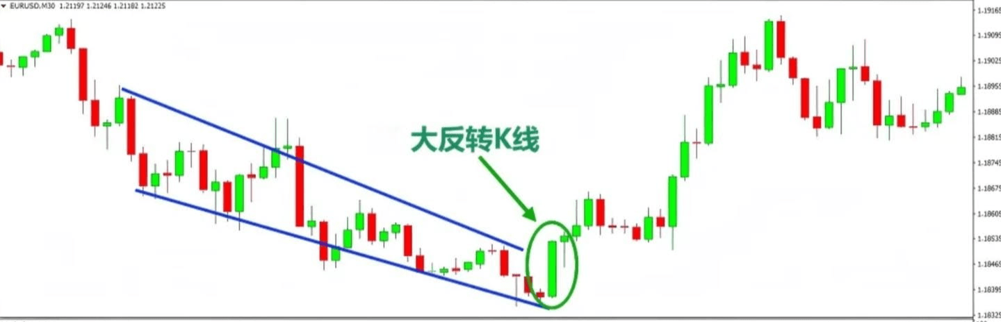 In the example above, the large bullish reversal candlestick can be seen as a signal that the trend may be reversing.