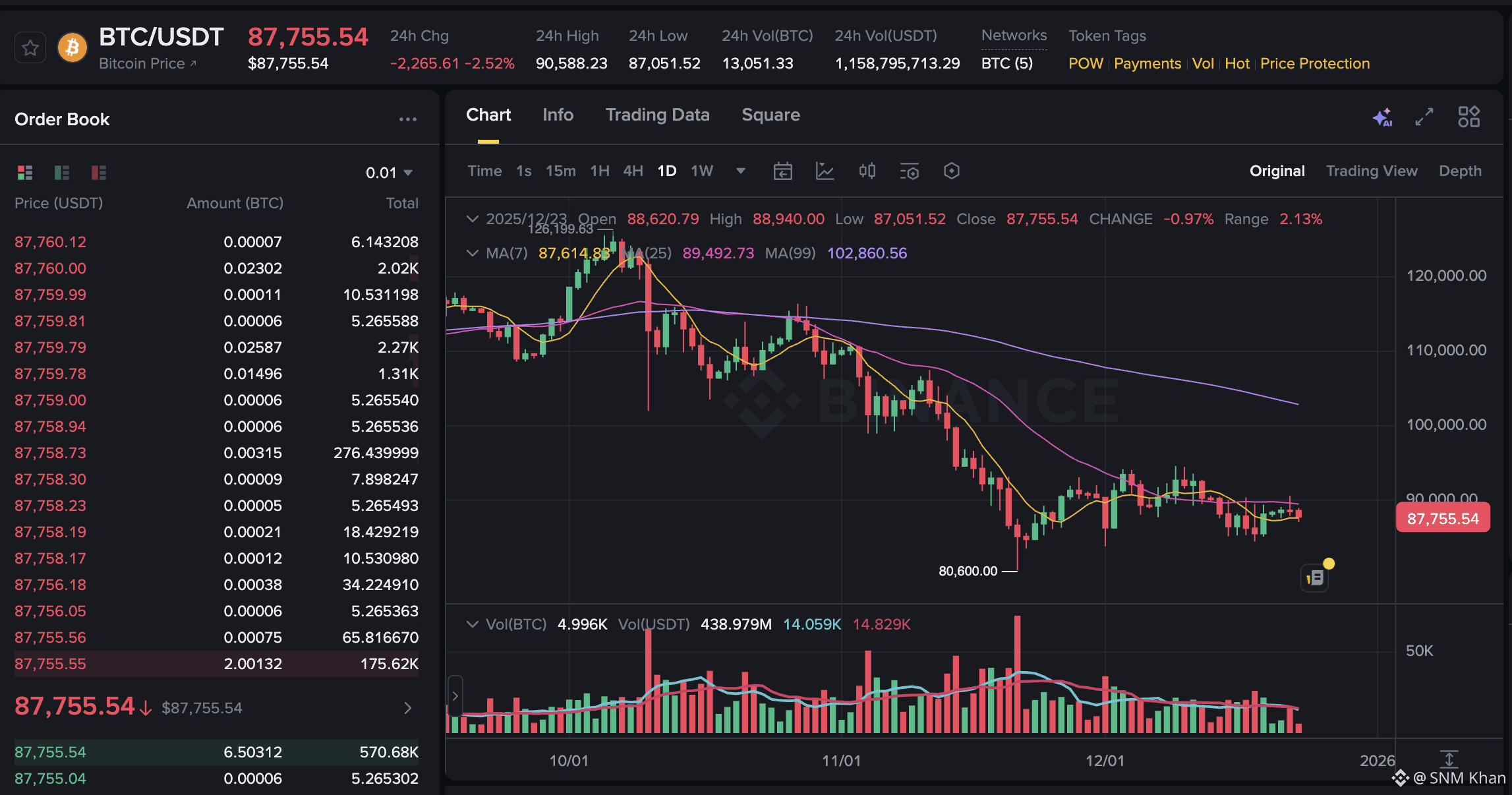 Looking ahead, Bitcoin’s ability to hold the $87.5K support level will be pivotal. A break below this threshold could reinforce the bearish narrative driven by institutional outflows and whale maneuvers, potentially setting the stage for further declines. On the other hand, holding this level could signal a resumption of bullish momentum, especially if ETF inflows reaccelerate after the holiday season. $BTC
