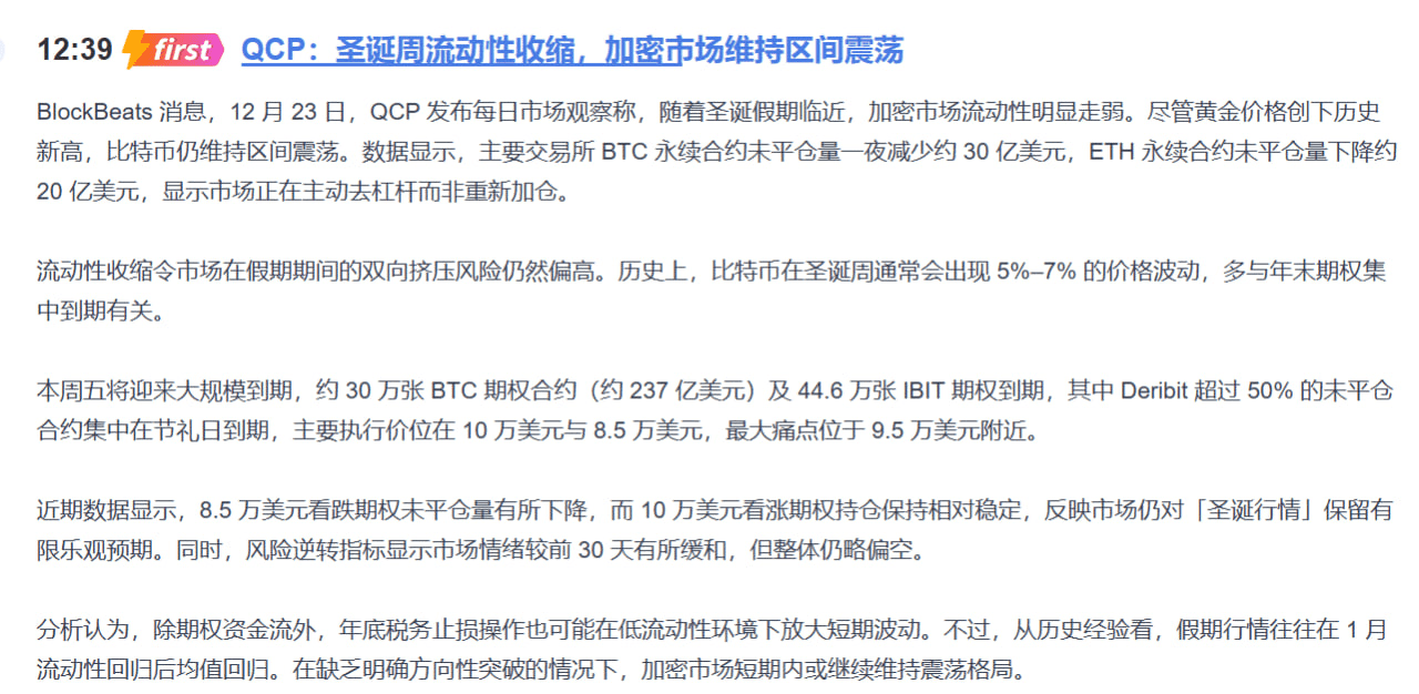 News: Liquidity dries up during Christmas week, options expiration may trigger volatility.
